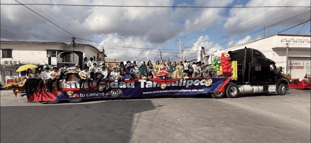 • Carro alegórico, que contó con la presencia de la Reina de la Universidad Tamaulipeca, quien aportó un toque de elegancia y distinción al recorrido.